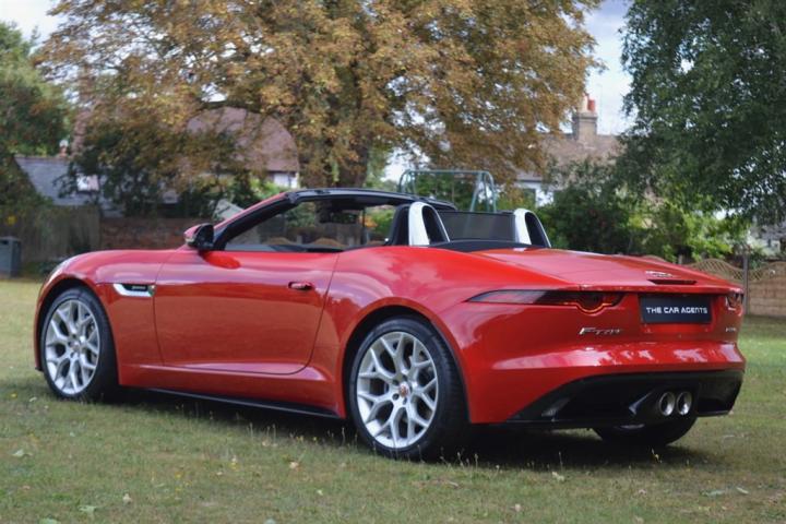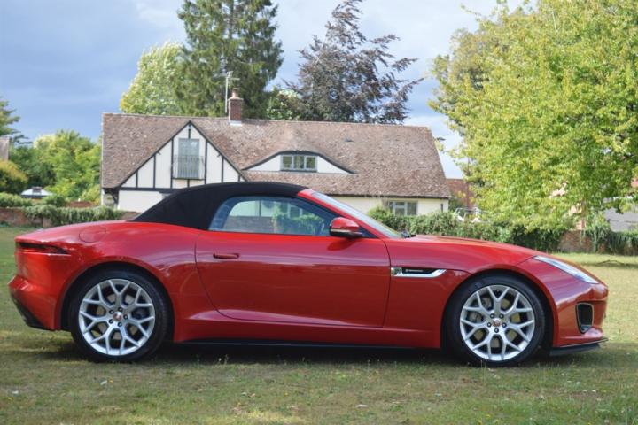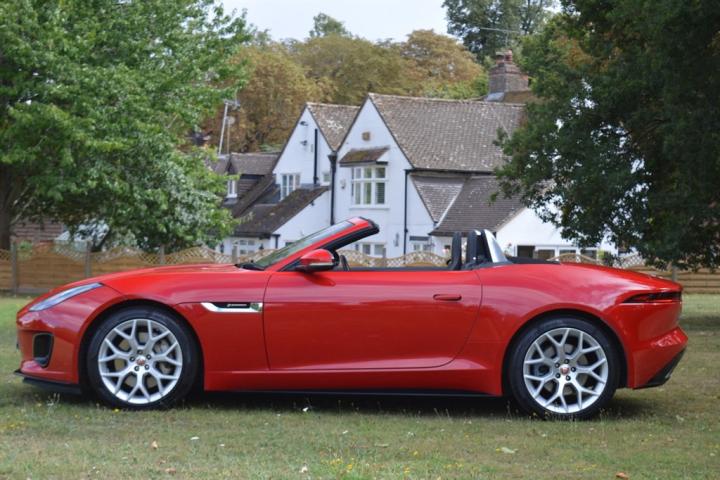 Just arrived in part exchange this exceptional Red with Black Hide 2021 Jaguar F Type 3.0 SUPERCHARGED V6 R Dynamic Convertible is a truly remarkable example of British automotive engineering. This stylish coupe boasts a potent 3.0 litre petrol engine, compliant with Euro 6 emissions standards, ensuring a blend of performance and efficiency. The R Dynamic trim level enhances its already impressive presence, while the inclusion of LED headlights with signature daytime running lights and adaptive front lighting provides excellent visibility in all conditions. Manoeuvring is made effortless with the integrated rear camera and complemented by a rear parking aid. Stay seamlessly connected on every journey with APPLE CARPLAY & MERIDIAN SOUND bringing your digital life into the cabin. Also the options include HEATED WINDSCREEN, HEATED STEERING WHEEL, SPORTS EXHAUST, HEATED & COOLED MEMORY SEATS, LUMBER, SAT NAV & BLUETOOTH.