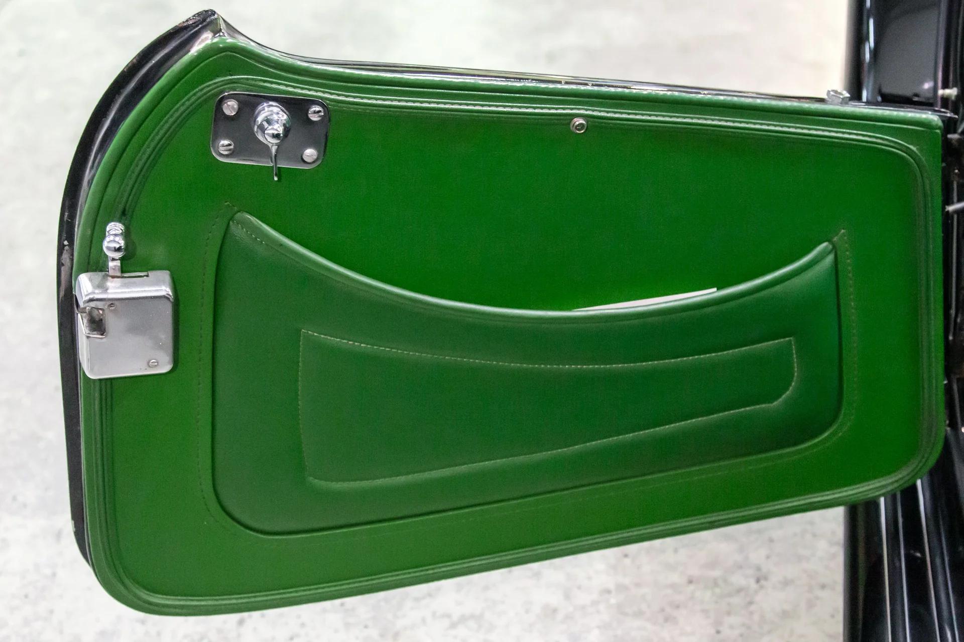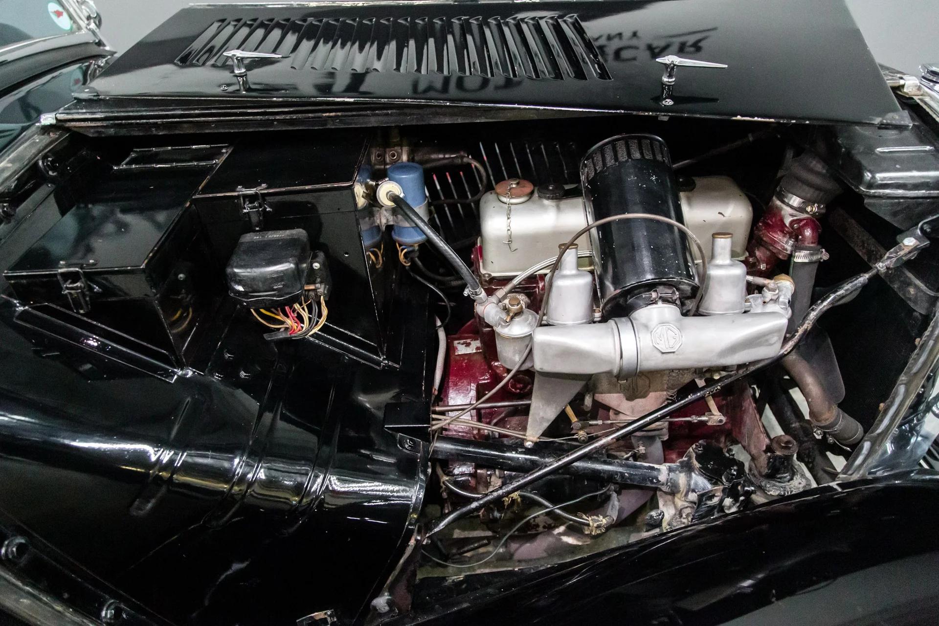 This beautiful black over green MGTC drives as nice as it looks. The car has excellent chrome ,nice leather, carpets, door cards ,and gauges .The paint is as nice as the pictures reflect. The wings are straight with no rust or accident history. The doors are tight ,wood in the tub is solid. The car hails from California and is not a victim of rust or accident history. The car will come with a new top or credit will be given for your choice of color.
