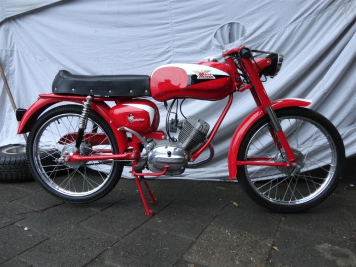 Hier een mooie Italiaanse Moto Morini Corsarino 50 cc viertaktmotor! Hij is perfect! Grote keus in motor- en bromfietsen in de Stolze Collectie!